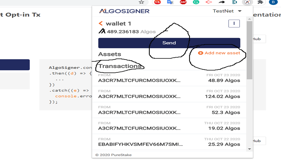 - Authorize Algo transactions such as payment, asset creation, and opt-in from the browser extension